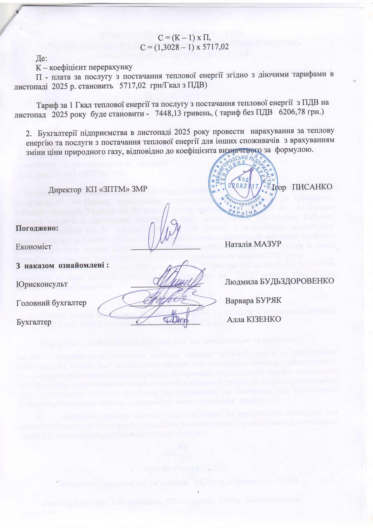 Керуючись Законом України «Про житлово-комунальні послуги» та вимогами Порядку № 869 із змінами, КП «ЗПТМ» ЗМР» здійснило коригування тарифів на теплову енергію та послуги з постачання теплової енергії, а також їх структур.
