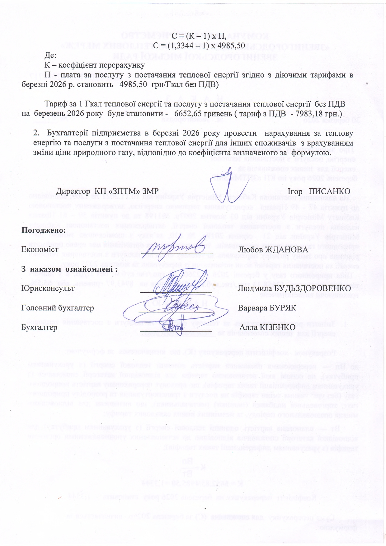 - зростанням витрат по фонду оплати праці в зв'язку зі зміною прожиткового мінімуму до 2684 грн.чисельності операторів котелень з 26 чоловік при фонді оплати 1649,5 тис.гнр.