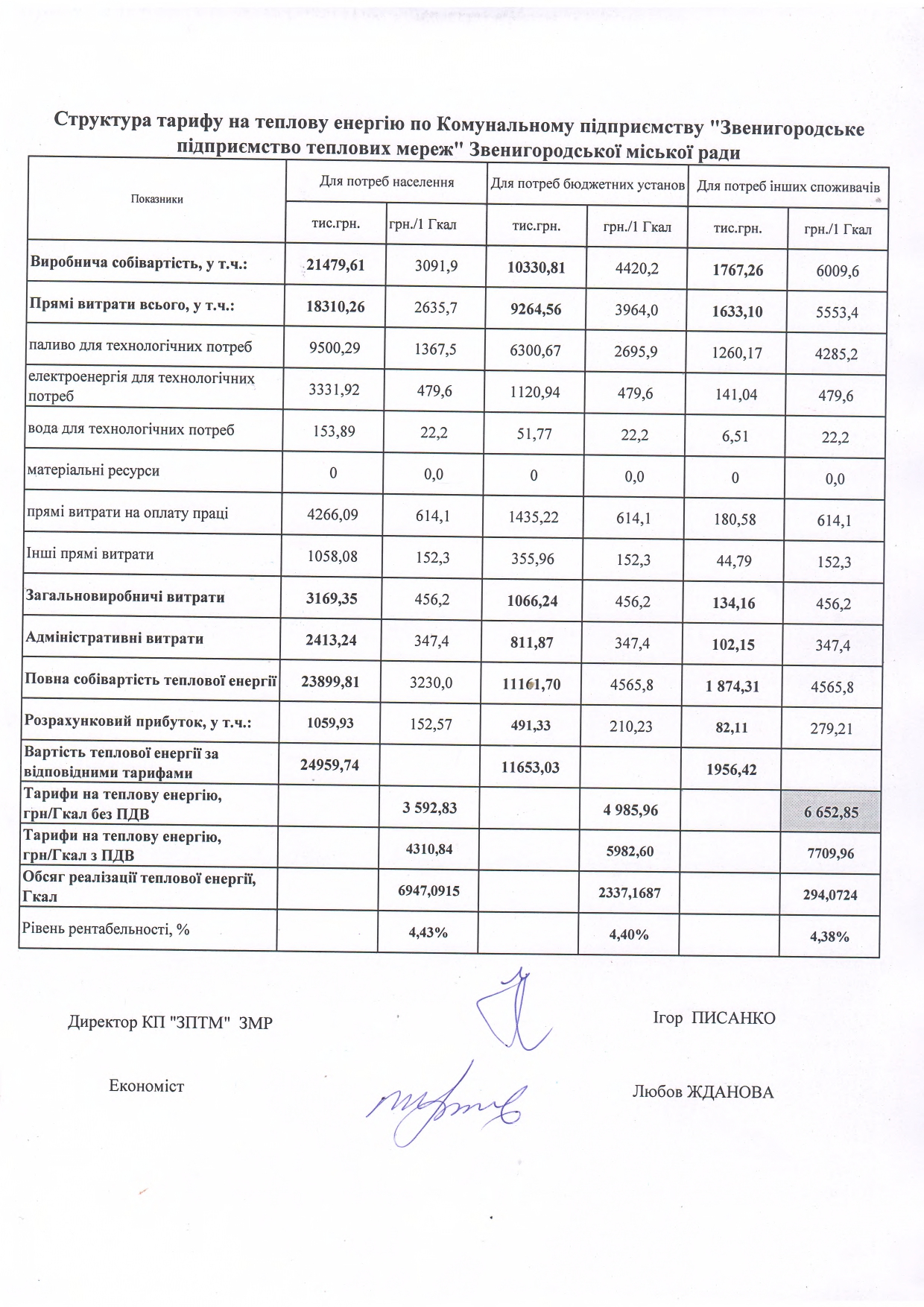 населення – 4673,15грн./Гкал (з ПДВ);